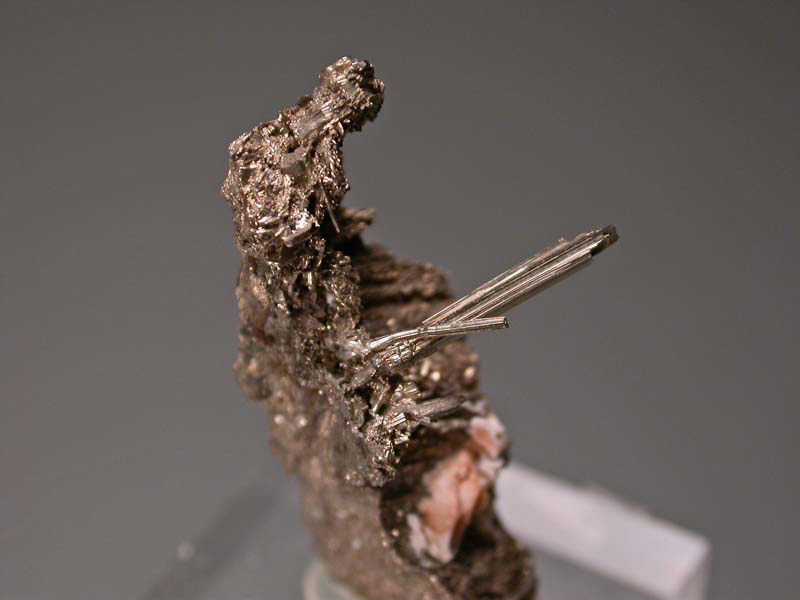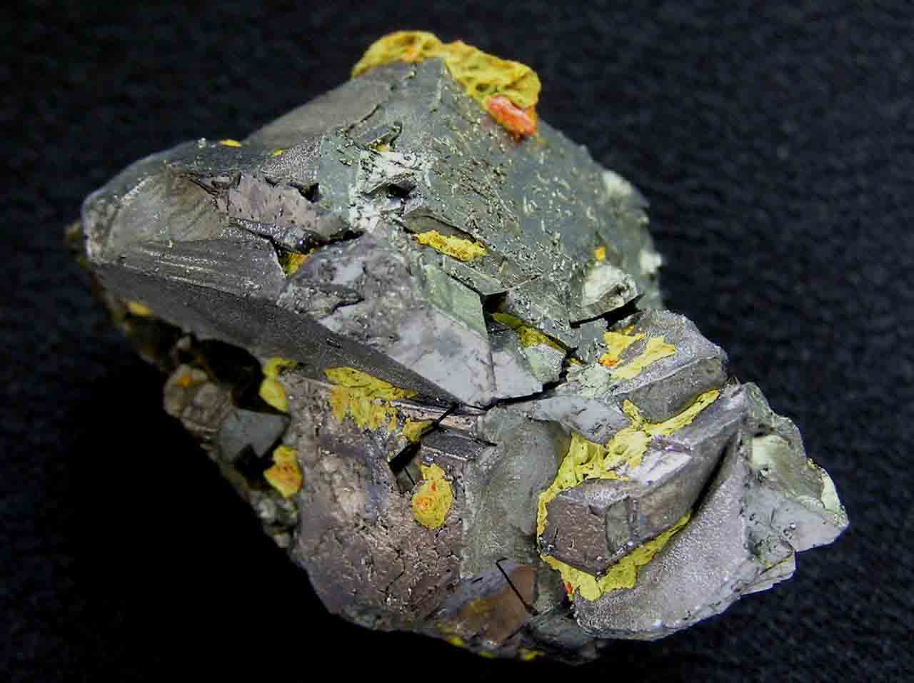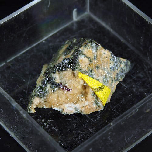 Size: H:2cm x W:1.5cm x D:1.5cm Description: A combination of three rare thallium minerals in crystallized form: routhierite (Tl(Cu,Ag)(Hg,Zn)2(As,Sb)2S6,) arsiccioite (AgHg2Tl(As,Sb)2S6) and protochabourneite (Tl5-xPb2x(Sb,As)21-xS34). The last two are, in addition, very new: arsiccioite is IMA 2013-58 and protochabourneite IMA 2011-054. The physical aspect of each species is as follows: arsiccioite is light red (first and second photo), protochabourneite is metallic black (third and sixth photos) and routhierite is shiny dark red (intergrown with arsiccioite). Arsiccioite and protochabourneite have not found at any other site in the world, so they are a one locality mineral. Monte Arsiccio Mine, Apuan Alps, Tuscany, Italy